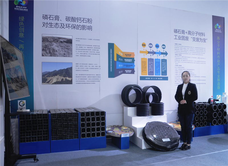 近年来,在国家环保政策引导下,贵州磷石膏产业发展如雨后春笋,涌现出了磷石膏在高分子材料中应用的新材料。心博官方网站认真贯彻落实贵州省委省政府“以渣定产”加快磷石膏多领域应用的重大决策部署,推进磷石膏改性后在高分子材料中的应用,让磷石膏真正变废为宝。自2018年以来,心博官方网站将磷石膏在高分子材料中的应用项目,纳入集团5年发展战略规划,投入大量研发经费,组建产、学、研科研团队,历时两年成功研制出了GFZ-磷石膏双层钢塑管、GFZ-W磷石膏双壁塑金管、GFZ-磷石膏塑合金电力通信管、GFZ-磷石膏碳纤维五防井盖、GFZ-磷石膏树脂井盖等三大类200多个型号的新产品,成功实现高分子磷石膏产品的工业化生产,产品各项性能指标超市场同类产品。并在贵州省内各地排水排污、雨污分流、黑臭水体治理、市政道路改造等重点项目中使用,获得建设单位一致好评。 在绿博会期间,心博官方网站现场展示的多个磷石膏产品,吸引了众多嘉宾的驻足参观,并不时用手机进行拍照和现场录像。